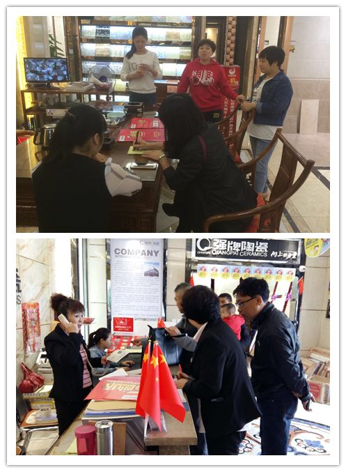 在前期蓄客方面,店面导购盛邀新老客户到店选购,小区组的队友通过驻点、拜访业主、免费设计、铺贴指引等方式,为广大业主提供更优质的服务并积累了许多意向业主。